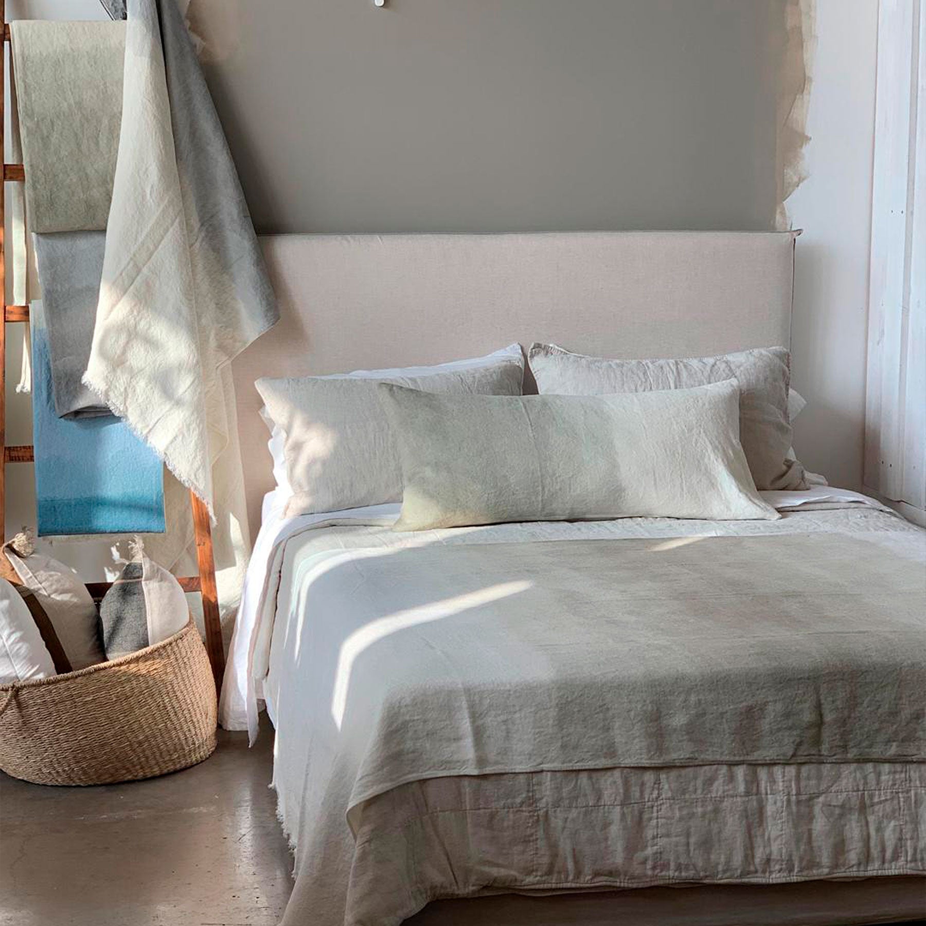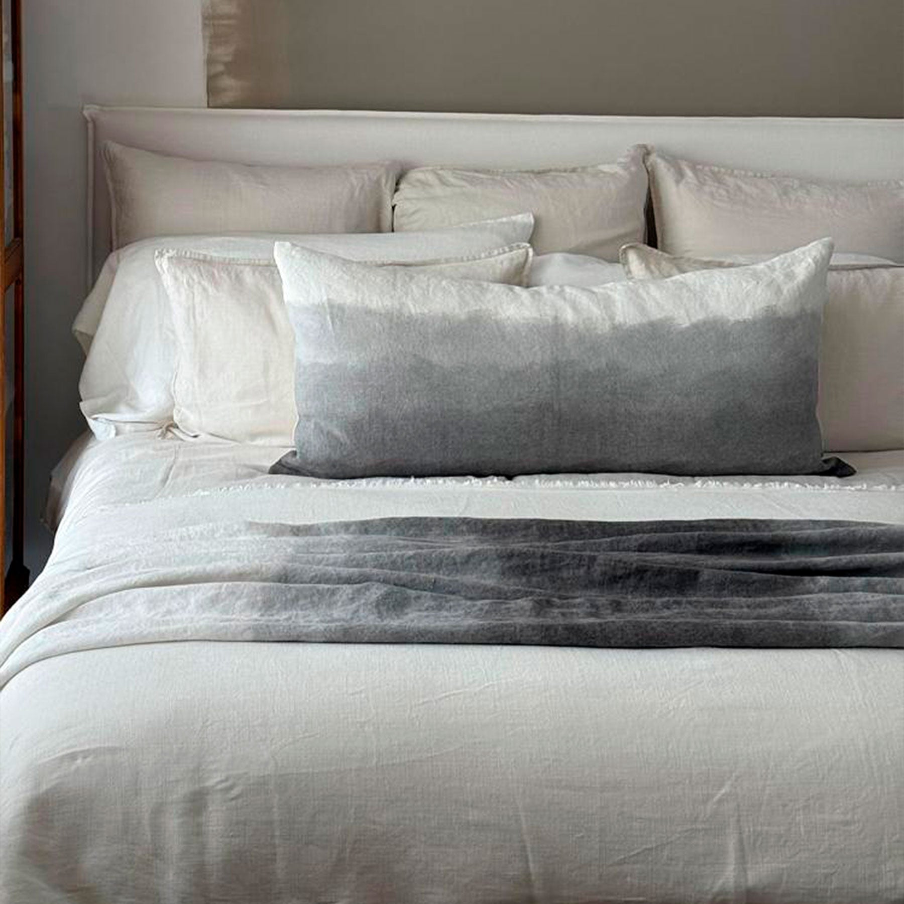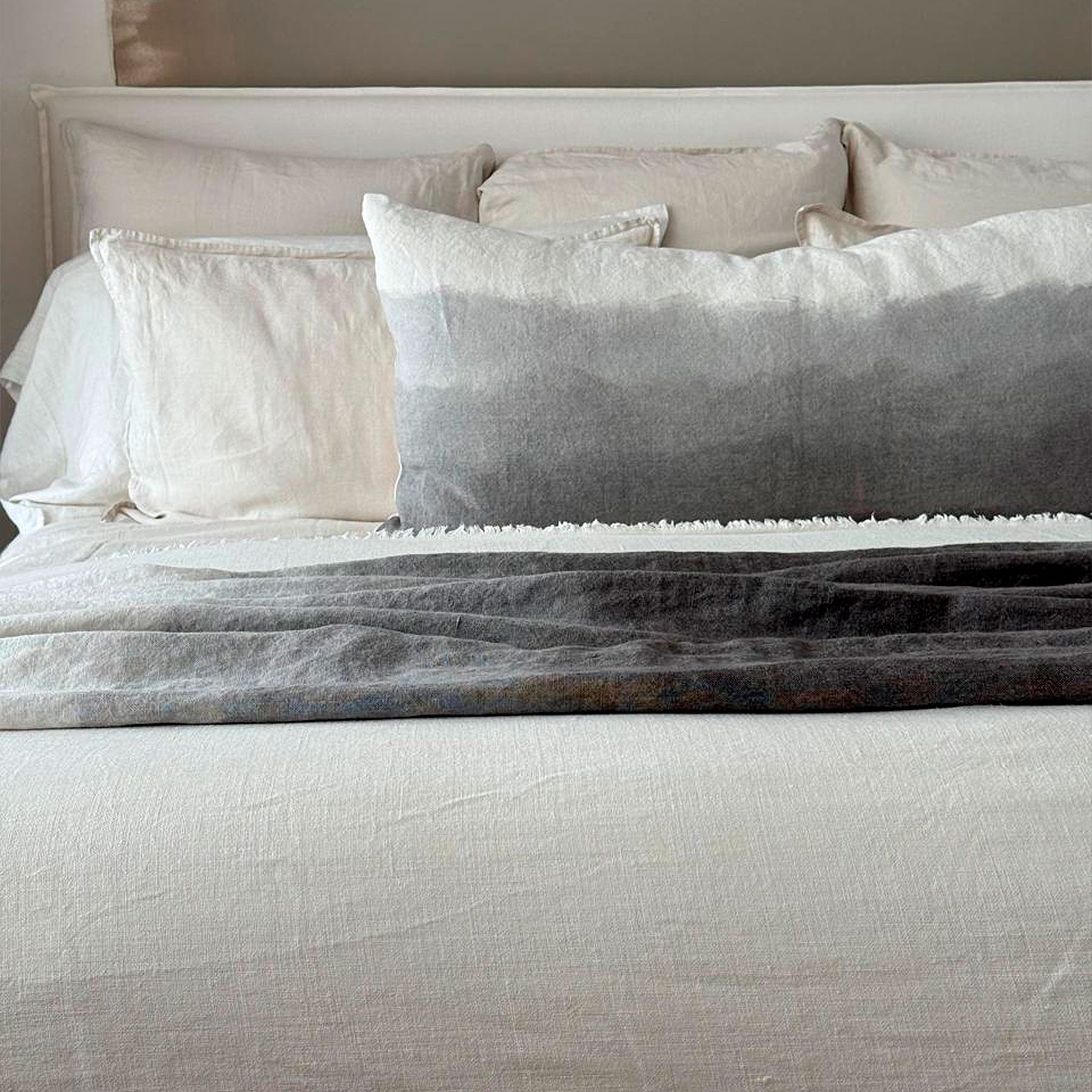 From Italy a collection of Sfumato plaids and heavy linen cushions, featuring