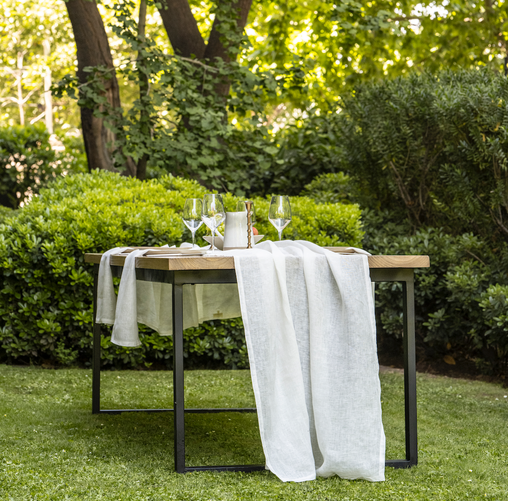 Made from 100% very lightweight linen, it is transparent and airy. The two sizes, both in width and length, are designed to be used stretched over another tablecloth, wrinkled or not center of the table, to decorate a dessert table and any other creative uses you can imagine.